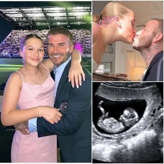 La imagen se extiende como un rompecabezas emocional que obliga a detenerse. En una parte, Harper aparece abrazada a su padre, David Beckham, en un estadio lleno de luces y aplausos. Él sonríe con orgullo, con esa mirada que solo tienen los padres cuando saben que, pase lo que pase, su mayor logro no está en trofeos ni en portadas, sino en la persona que tienen entre los brazos. Ella, joven, aún con la inocencia reflejada en el rostro, se apoya en él con naturalidad, como si ese abrazo fuera su lugar seguro en medio de un mundo que no deja de observarla.